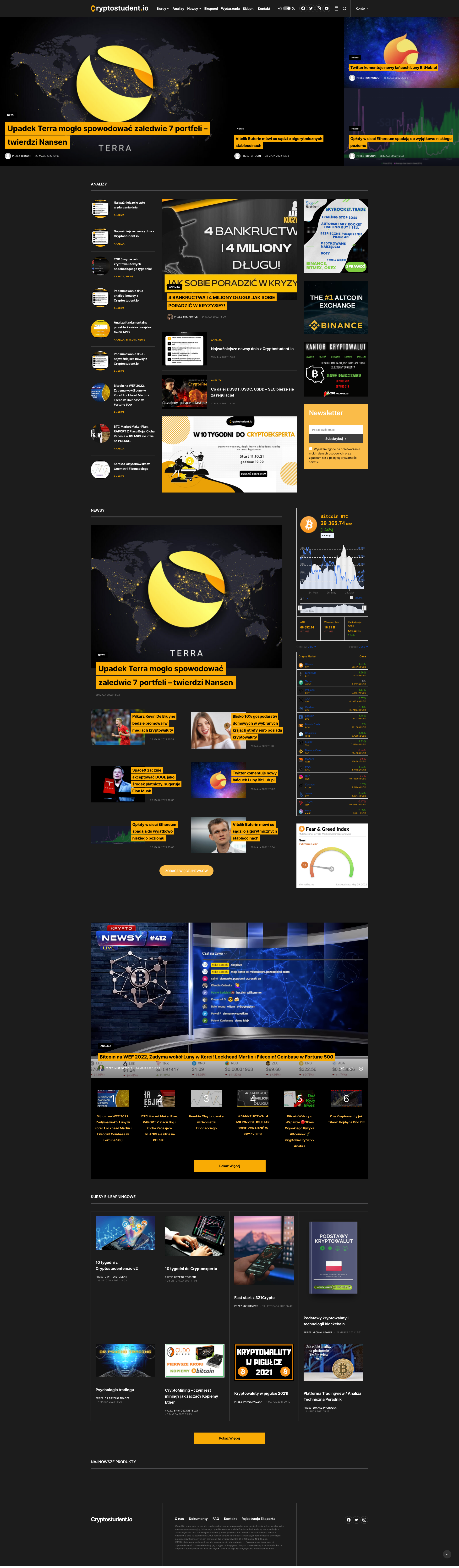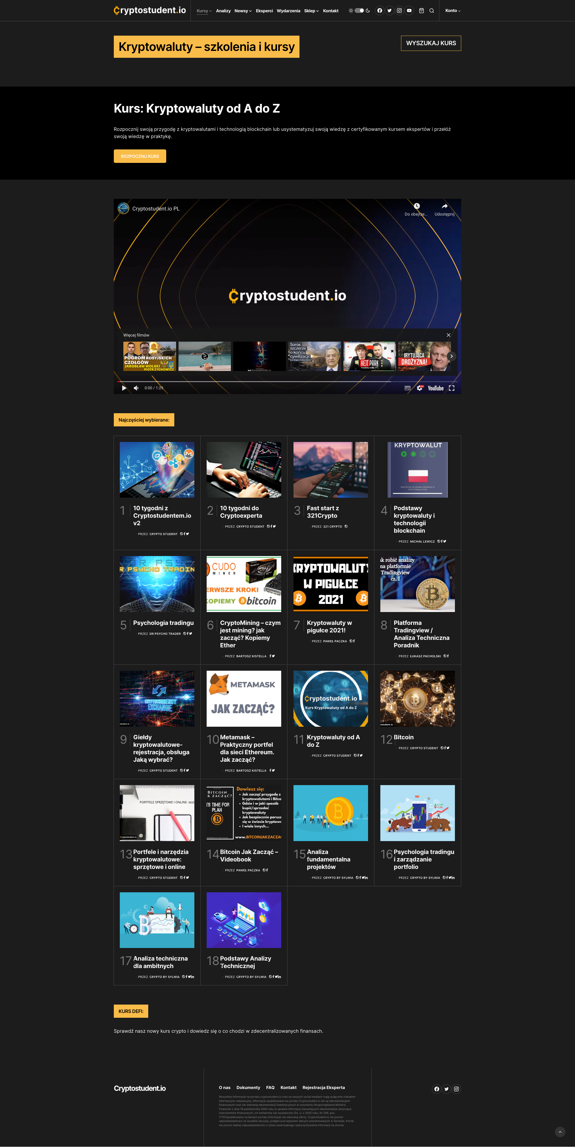 Nowoczesny system e-learningowy oparty o WordPress oraz Woocommerce pozwalający zakupywać kursy oraz produkty fizyczne. Kursanci mogą zapisywać się na szkolenia, uczyć online, zdawać testy oraz otrzymywać certyfikaty potwierdzające umiejętności z zakresu kryptowalut. Płatności odbywają się za pomocą kart płatniczych, kont bankowych lub transakcji z użyciem kryptowalut. Dodatkowo portal szkoleniowy pełni również funkcje informacyjną, gdyż strona głównia jest zbiorem wszystkich najciekawszych newsów ze świata kryptowalut, odświeżanych kilkadziesiąt razy na godzinę. Dzięki temu serwis stanowi kompetendium wiedzy w tej kategorii.
