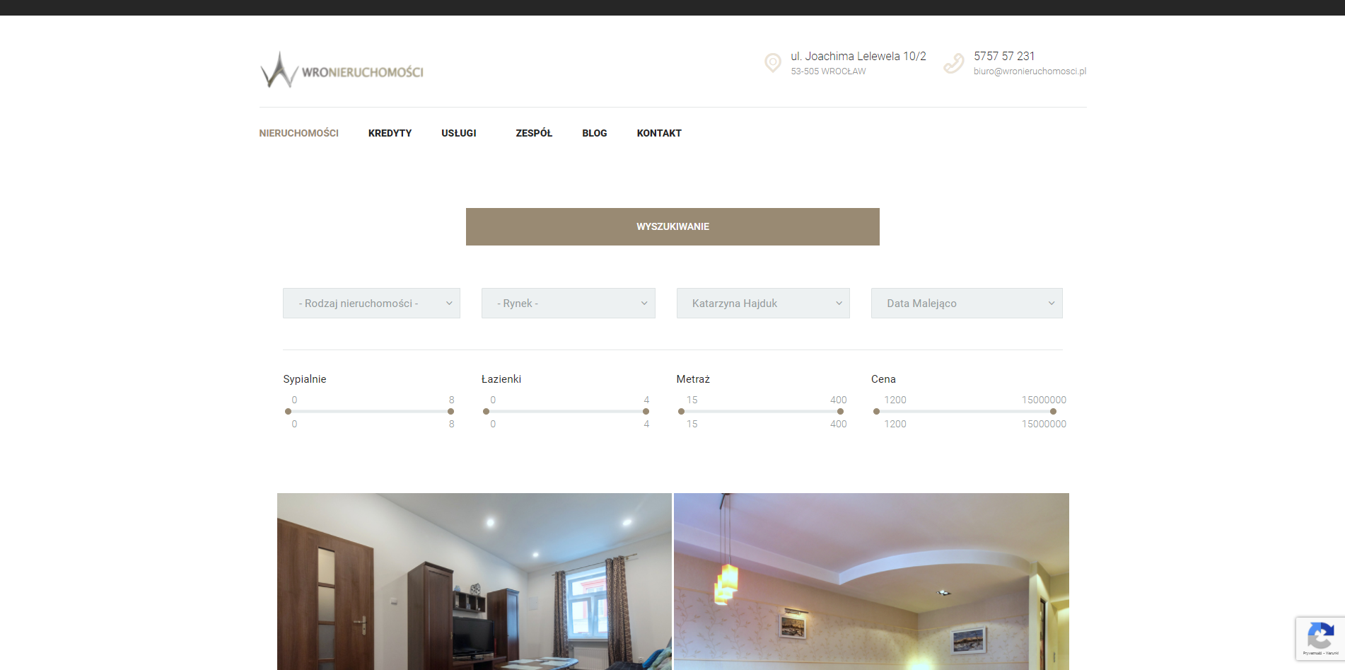 Integracja z Asari oraz dostosowanie szablonu wraz z wyszukiwarką do wyświetlania na serwisie aktualnych ofert nieruchomości, prosto z systemu Asari. Prace graficzne oraz kompozycyjne były po stronie Pani Agaty z współpracującej z nami firmy.